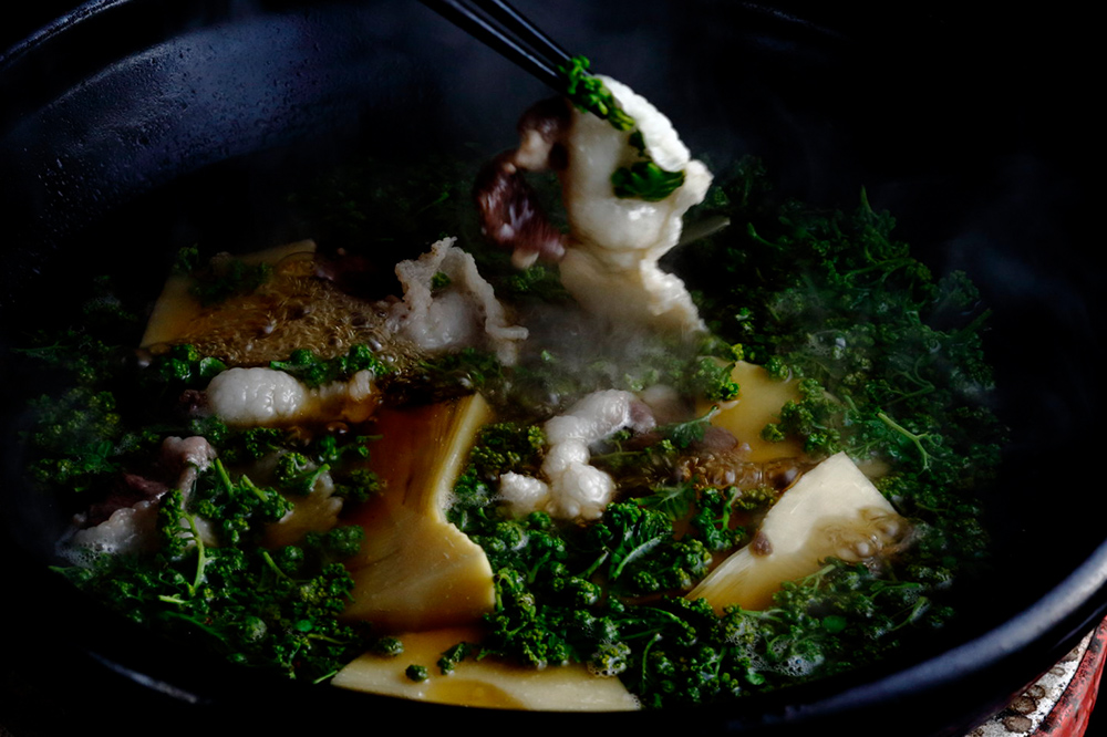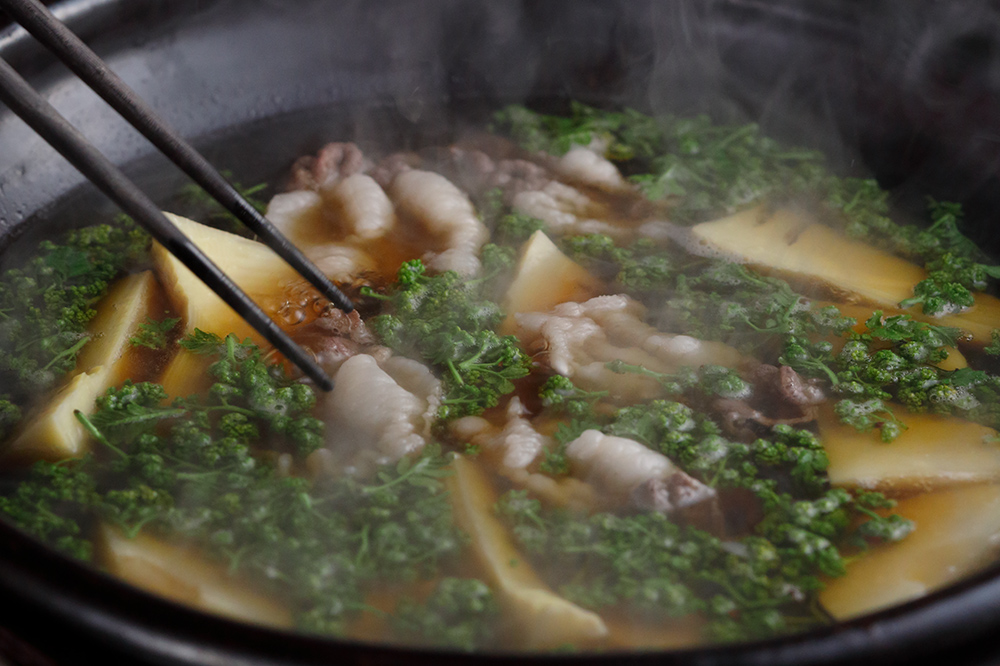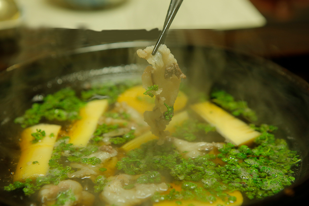 In different seasons, bear meat can be enjoyed as Hanazansho-nabe (meaning “pepper hotpot”). With plenty of pepper, the aromatic hotpot is available from April until mid-May.