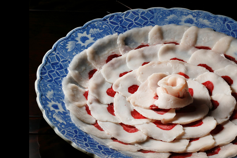 Bear meat from the Hira Mountains is a rare delicacy only hutned in the coldest times of winter. Only the most competent hunters can hunt the Japanese black bears, which meat is sweet and rich, yet mellow to the tongue. Tsukinabe is particularly popular with the female guests as the collagen in the meat moistens and enhances the skin.