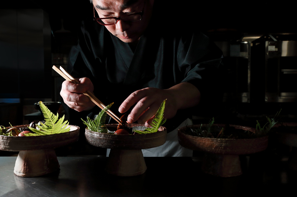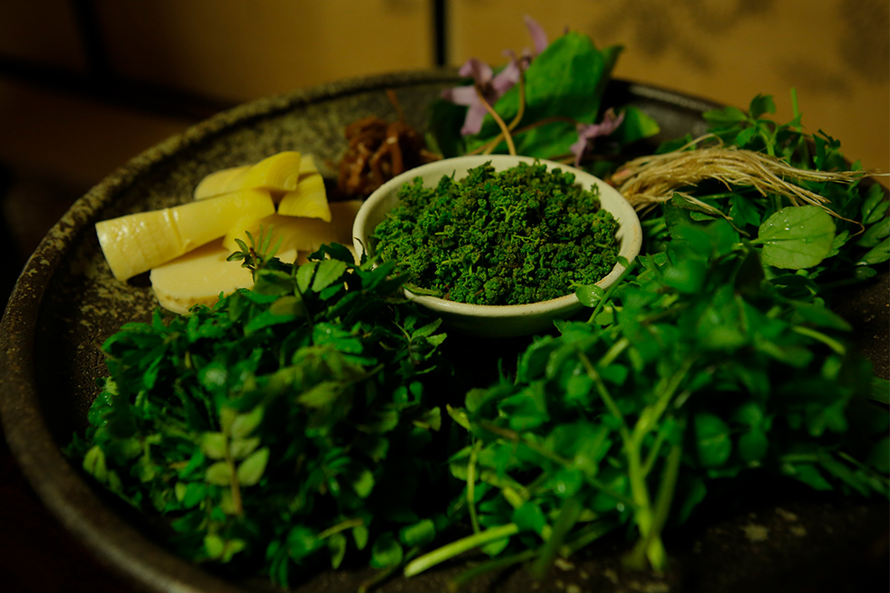 Fine cuisine made from ingredients foraged from the nearby mountains