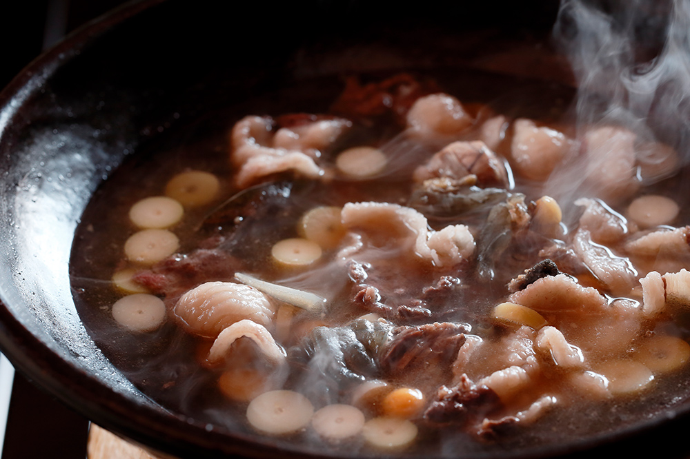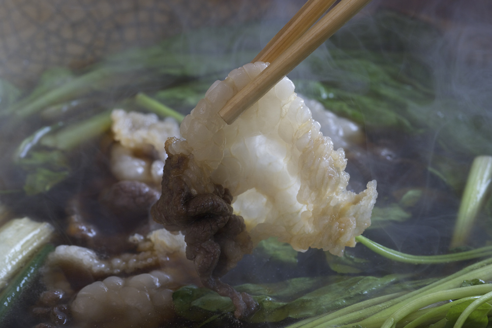 Hirasansou's tsuki-nabe is a hotpot dish that derives its name from the moon bear (natively called tsuki-no-wa-guma), a indigenous species which has a white crescent moon shaped pattern around its neck.