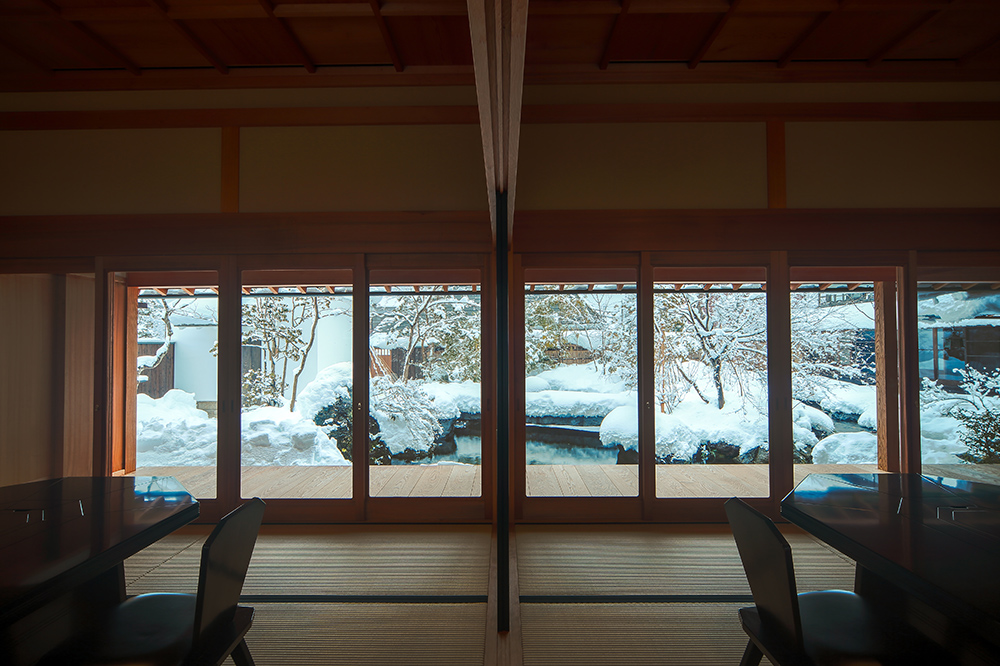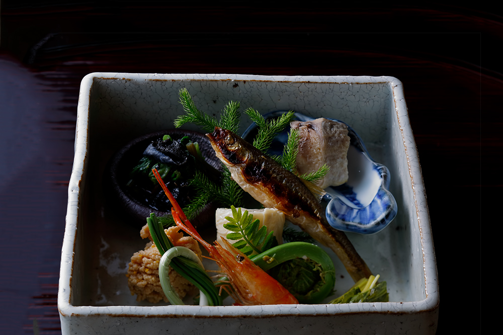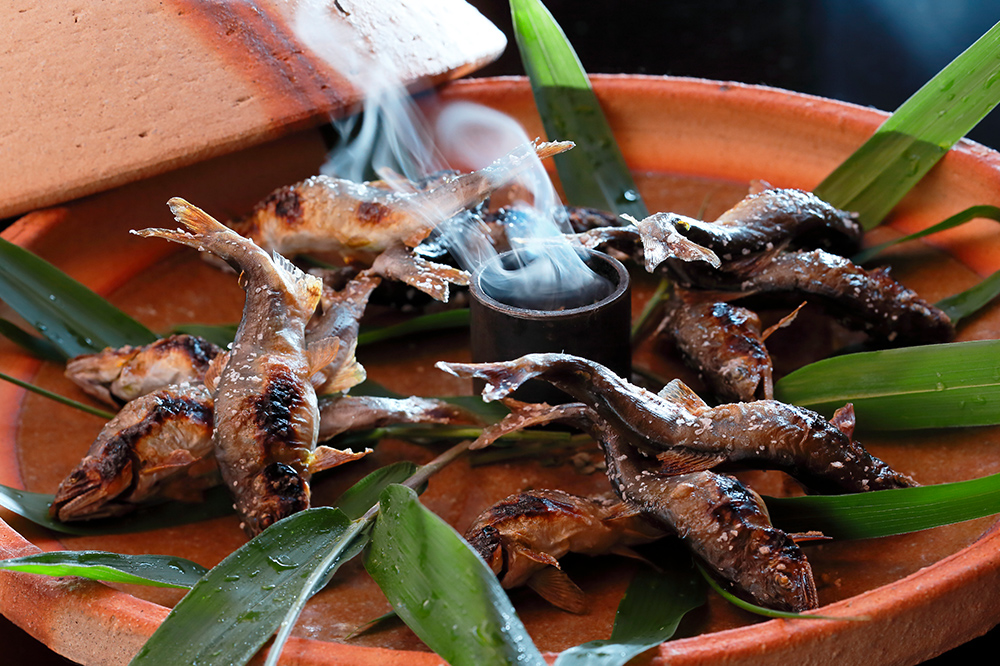 Fresh ingredients that change according to the season are a blessing from the mountains, from sweetfish, eels, and softshell turtles from the rivers, to game meat such as deers, boars, and bears. Vegetables are cooked to enhance its natural flavors, and the course meals are a combination of the local, traditional dishes and modern, original cuisine.