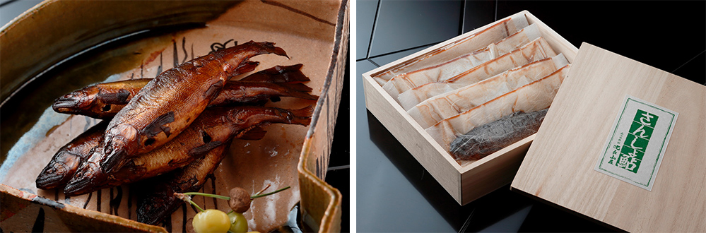 Slowly cooked parent sweetfish with plenty of green Japanese peppercorn.